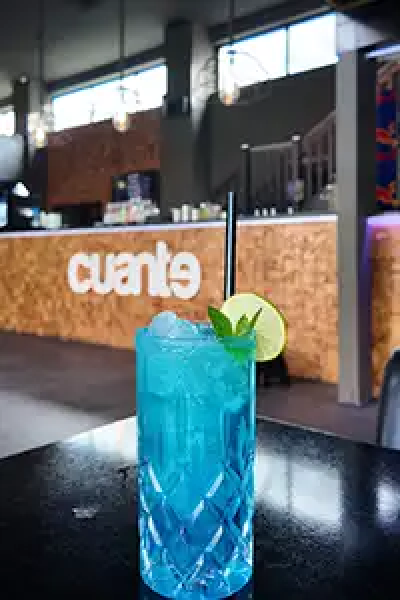Erfrischender Frucht-Cocktail mit Maracuja, Ananas, Zitrone, Limette, Kiwi und Blue Curacao-Cocktail. Ein harmonischer Wechsel zwischen süß und sauer.